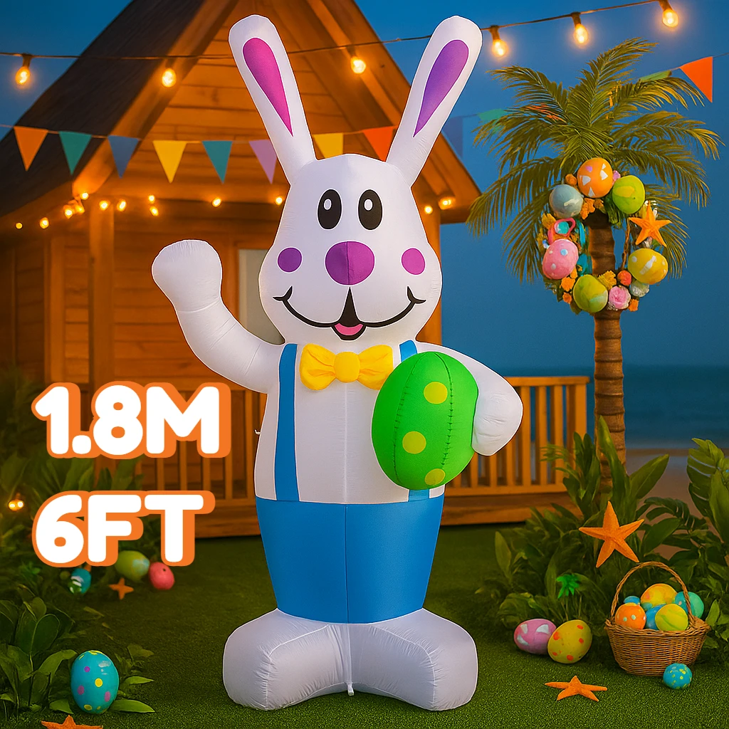 6FT Pasen Feestelijk Opblaasbaar Konijn Draag Een Ei Decor Ingebouwd LED Licht Luchtgeblazen Party Yard Decor Leveranties Pasen Opblaasbaar