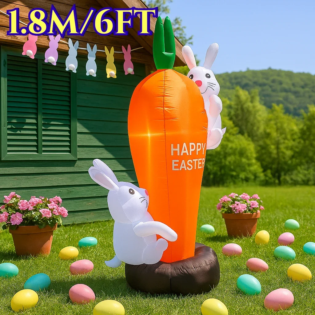 Outdoor Vakantie Decoraties 1.8M/6FT Happy Easter Opblaasbaar Konijn Holding Oversized Wortel LED Verlichting Model Tuin Decor