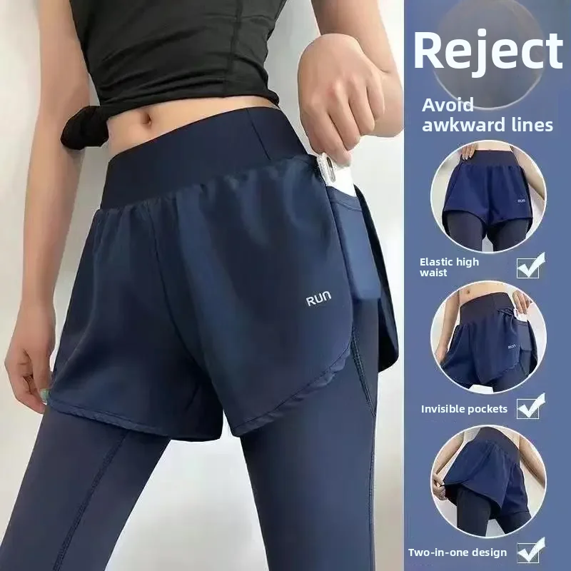 Hoge Elastici Fitn Dames Strakke Running Tennis Yoga Broek Nep Tweedelige Butt-Lifting Qui-Drng Afslanken Lange Broek