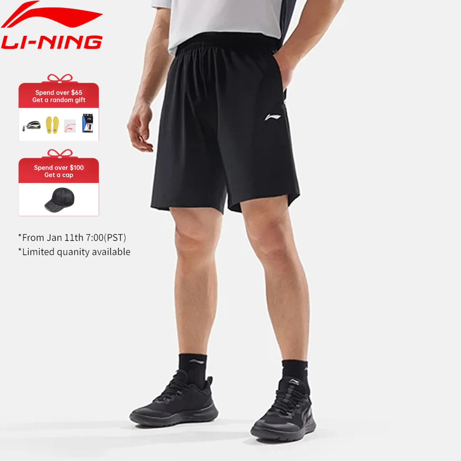 Li-Ning Trainingsgebreide shorts voor heren AT DRY FREEZE Normale pasvorm 79% polyamide 21% elastane voering Sportbroeken AKYV033