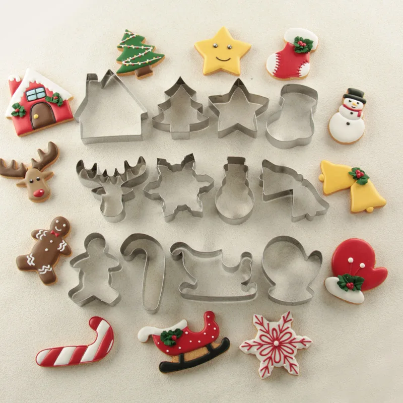24/26pcs Meerdere Vormen Kerst Cookie Cutters Rvs DIY Biscuit Mold Kerstman Rendier Cake Decor Bakken Tools
