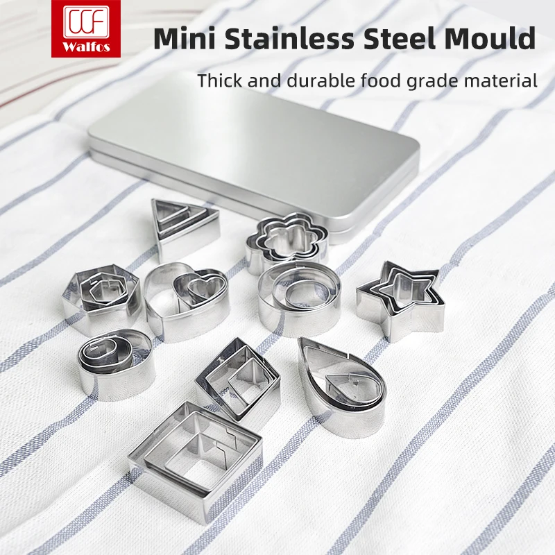 Walfos 30 Stuks Rvs Cookie Cutters Set Kinderen Plunger Formulieren Voor Cake DIY Mini Gebak Bakken Bakvormen