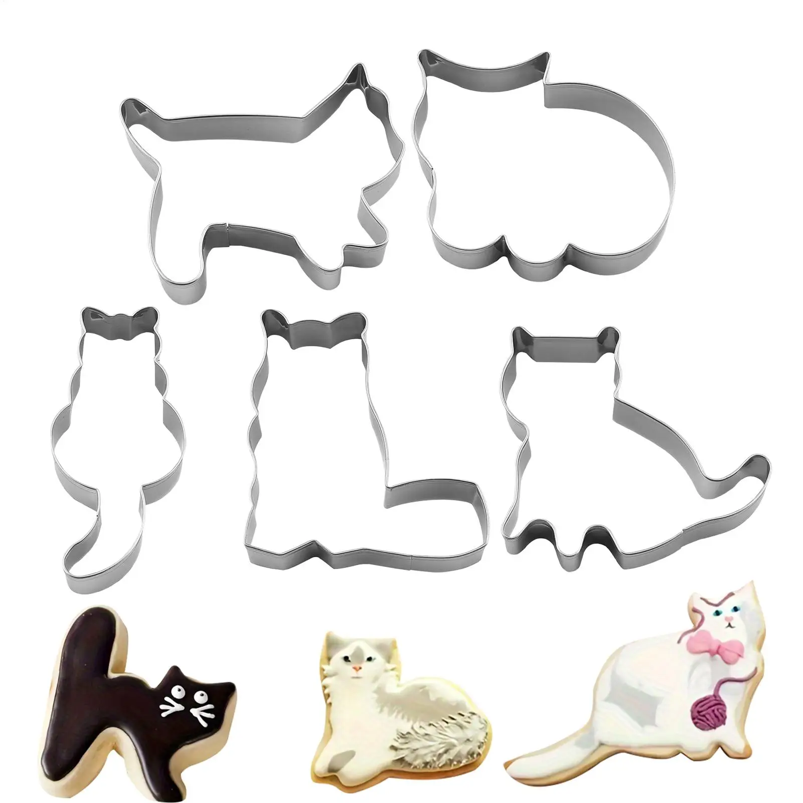 Dessertbaksnijder Kat-thema Leuke baksnijders 5-delige roestvrijstalen mallen Herbruikbare gereedschappen voor het snijden van keukendeeg