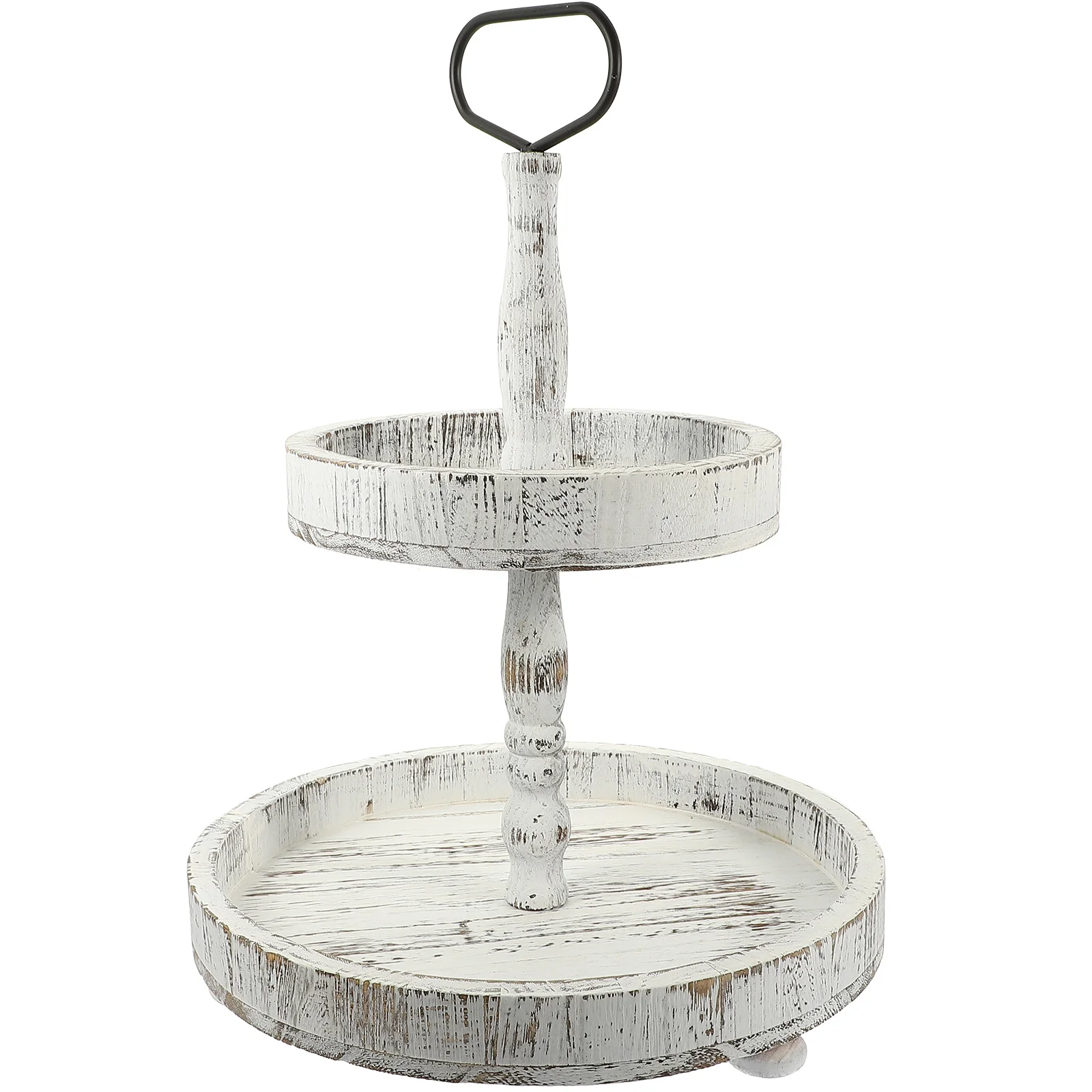1Set Houten Gelaagde Taartstandaard Twee Laag Rustiek Dessertbakje Houten Boerderij Decor Feest Bruiloft Display Middelpunt