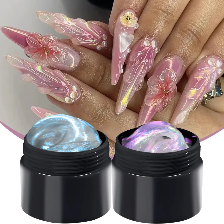 Aurora Pearl Mermaid 3D Sculpting Gel - Flash-verhardende, antiaanbaklaag handnagelverlenging en modelleringsgel voor nagelsalon