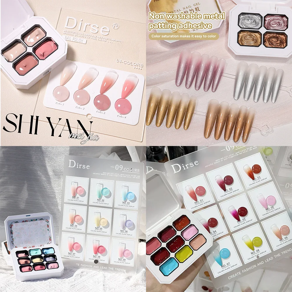 Populaire 4/9 Kleuren Patting Gel Polish Vier-in-één Nude Roze Kleur Parel Pat Glue Nagellak Fijne Glitter Kleurrijke Pat Gel Art