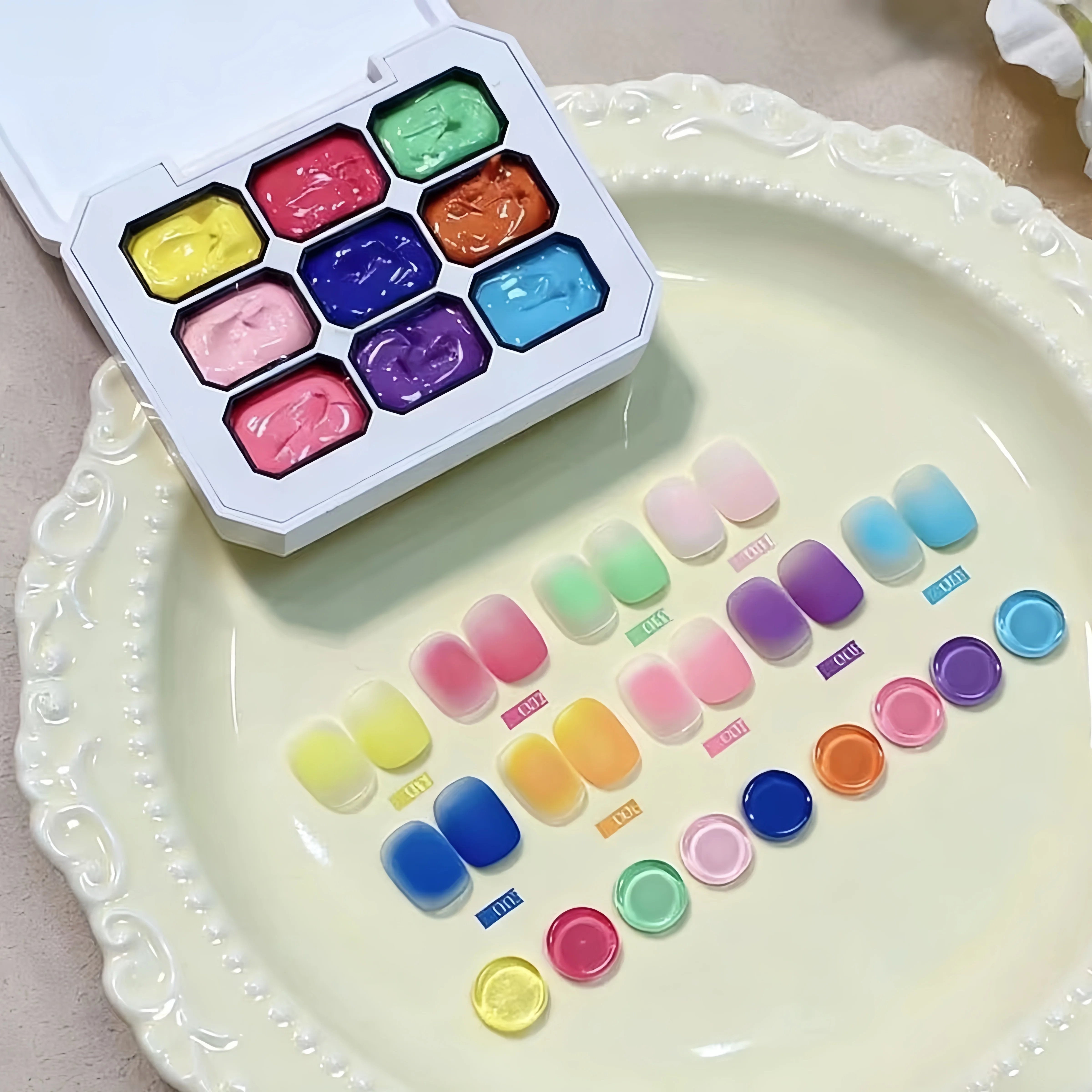 Rainbow Gradient Solid Nail Polish Gel, Kleurrijke manicure-gel, 9 vakjes, Fashion LED-wasbare gel, romige textuur, salonkwaliteit