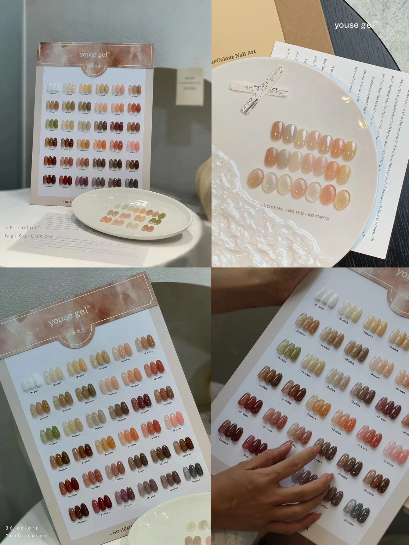 36-kleuren lente/zomer melkkoffie jelly nagellakset met kleurenkaart, UV-nagelgel, DIY nagelkunst charme, Franse manicure, sui
