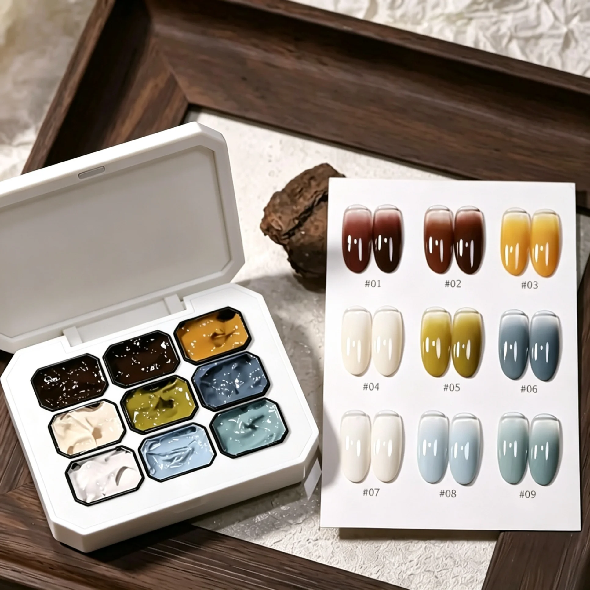 9-kleuren vaste nagellak, blauw, chocoladekleurige verflijm, populaire nagelgel met hoge kleurintensiteit, DIY zeezoutchocolade nagelkunst