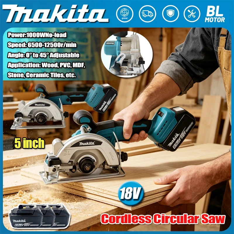 Makita 5 inch borstelloze motor snoerloze elektrische cirkelzaag oplaadbare handzame hout- en steenzaag met verstelbare snijhoek