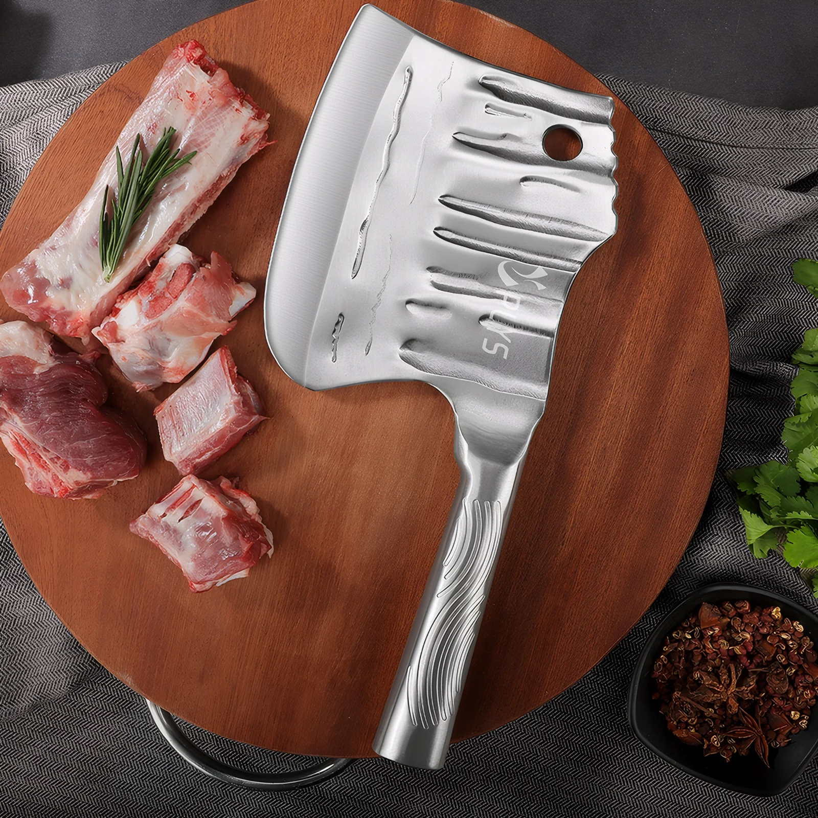 PLYS Handgesmeed vleeshakselaar, snijmes, volledig stalen bijlmes, verdikt mes, zwaar uitgevoerd keukenmes, antisliphandvat
