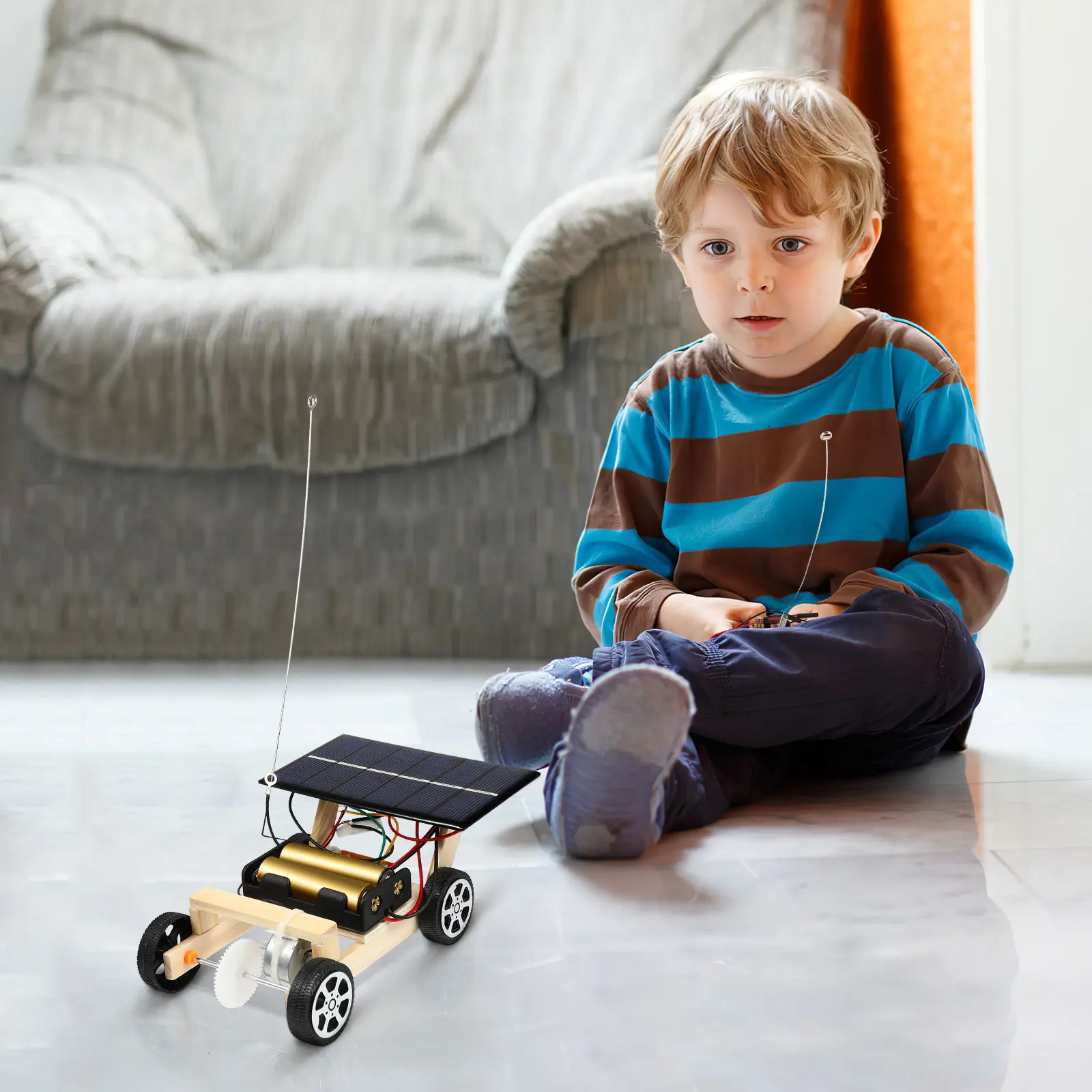 1 set doe-het-zelf educatieve speelset op zonne-energie, auto-experiment met afstandsbediening voor kinderen, activiteit houten zonne-auto