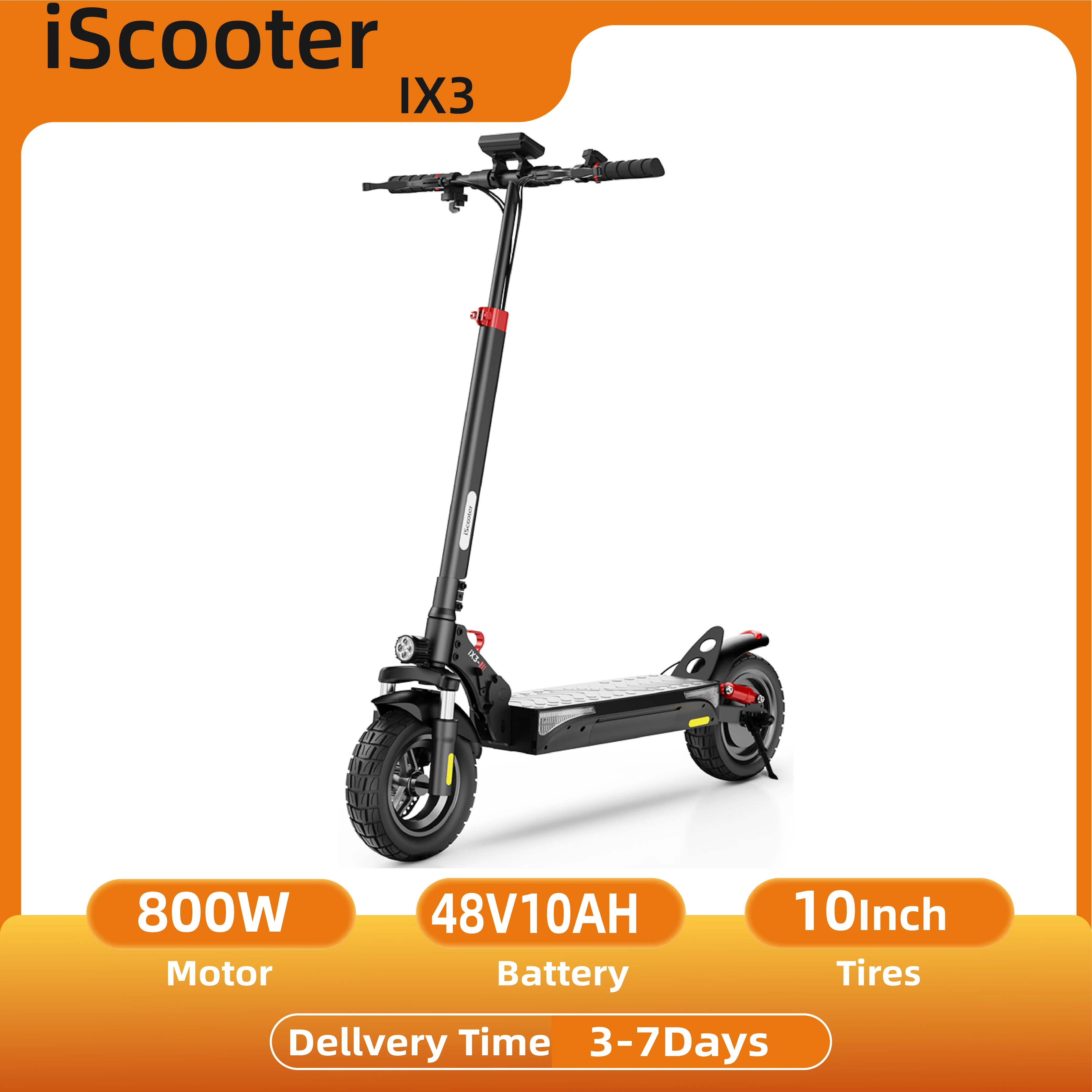 ISCOOTER IX3 Elektrische Scooter voor Volwassenen, 800W motor, 48V10Ah E-Scooter, 10 inch opblaasbare off-road banden, opvouwbare E-Scooter