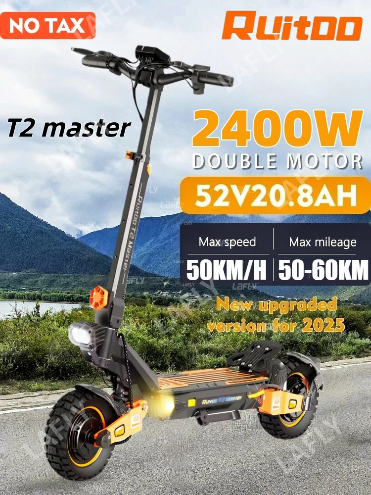 RUITOO T2 Master 2025 Nieuwe 2400W Dual Motor Elektrische Scooter 52V 20.8Ah Hydraulische Schokabsorptie Snelheid 55 km/u Volwassen Escooter