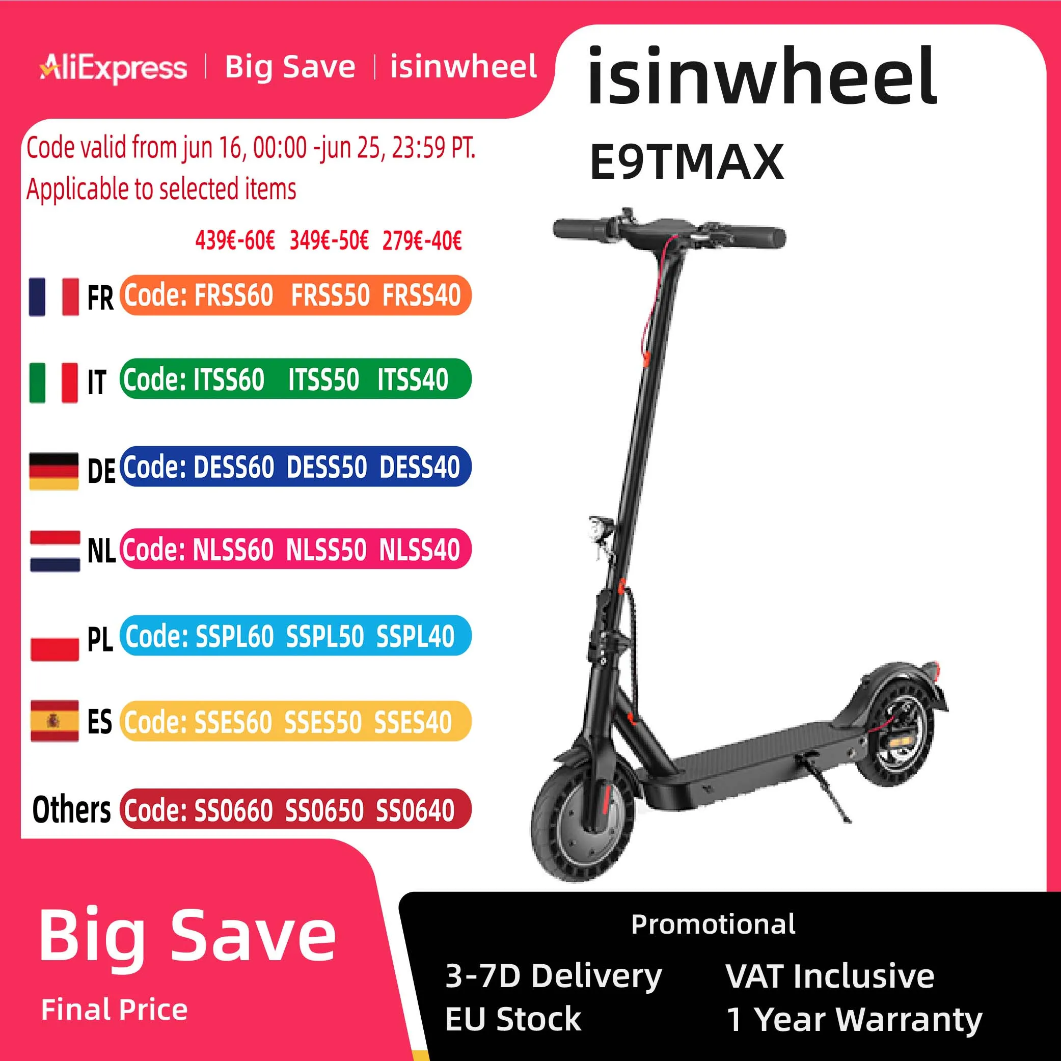 Isinwheel E9TMax elektrische scooter voor volwassenen 500 W motor 36 V 10 Ah batterij E-scooter 10 inch massieve band Stad woon-werkverkeer ESscooter