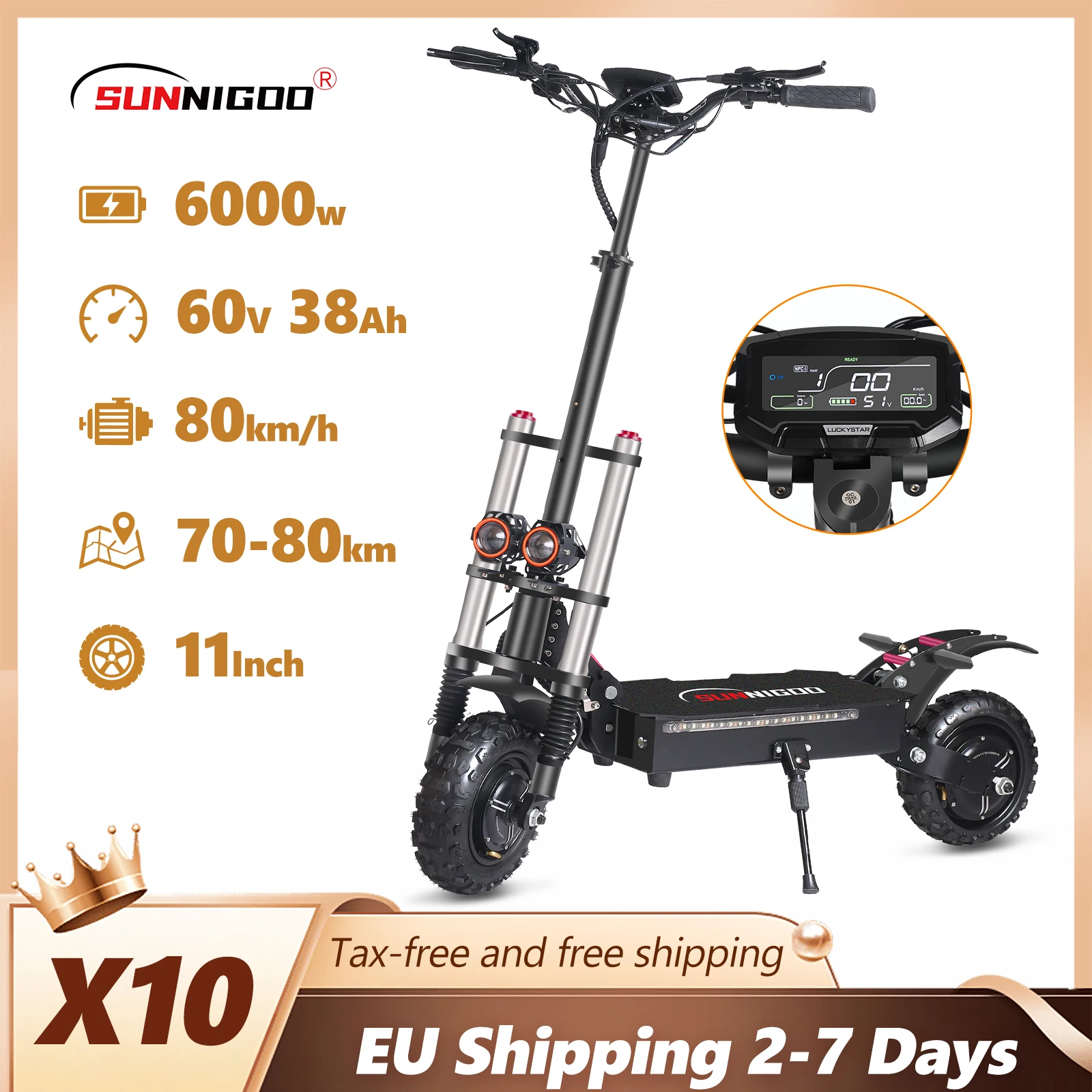 6000 W krachtige elektrische scooter 60 V 38 Ah maximale snelheid 85 km/u 100 km bereik 11 '' band dubbele schokabsorberende opvouwbare EScooter voor volwassenen