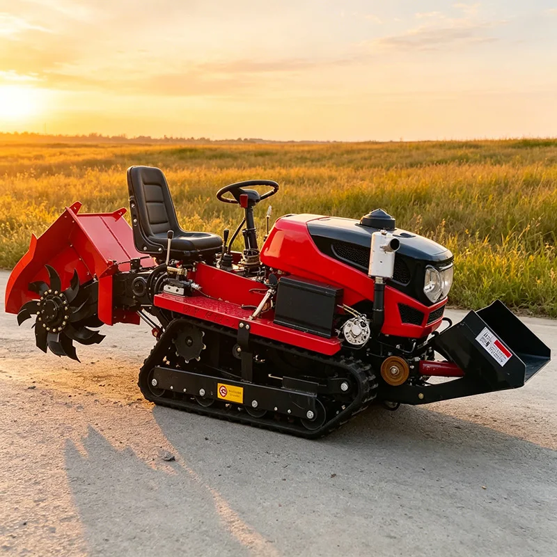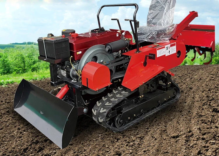 Geoptimaliseerde kleine landbouwmaaier met hoge efficiëntie, volledig terrein geschikte rupsbandtractor, rotorkopeg en cultivator
