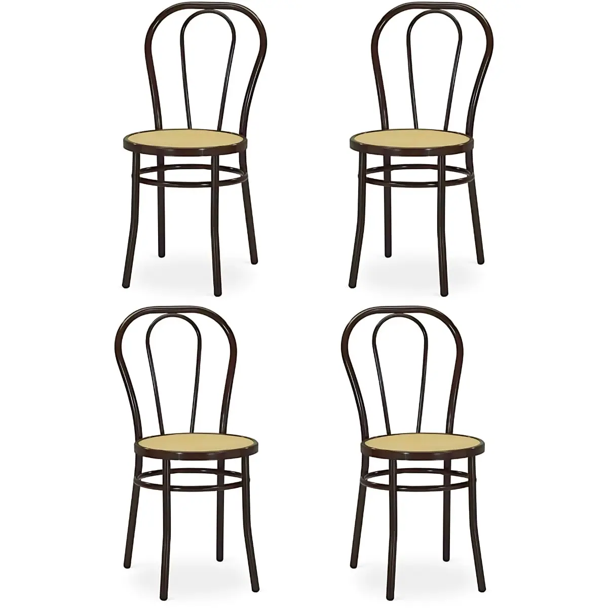 Tomaino-ijzeren keukenstoel met strozitting-Vienna eetkamerstoelen set voor restaurant, bar, Osteria, Trattoria Thonet model, Bistrot (4, zwart)