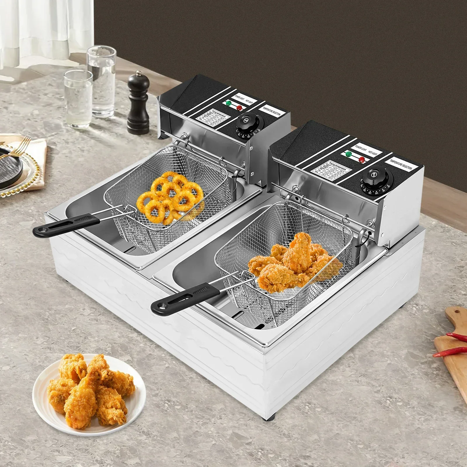 Commerciële elektrische frituurmachine, 1,59 gal dubbele potten, 220 V roestvrijstalen dubbele cilinder hoogoven met frituurnetzeven