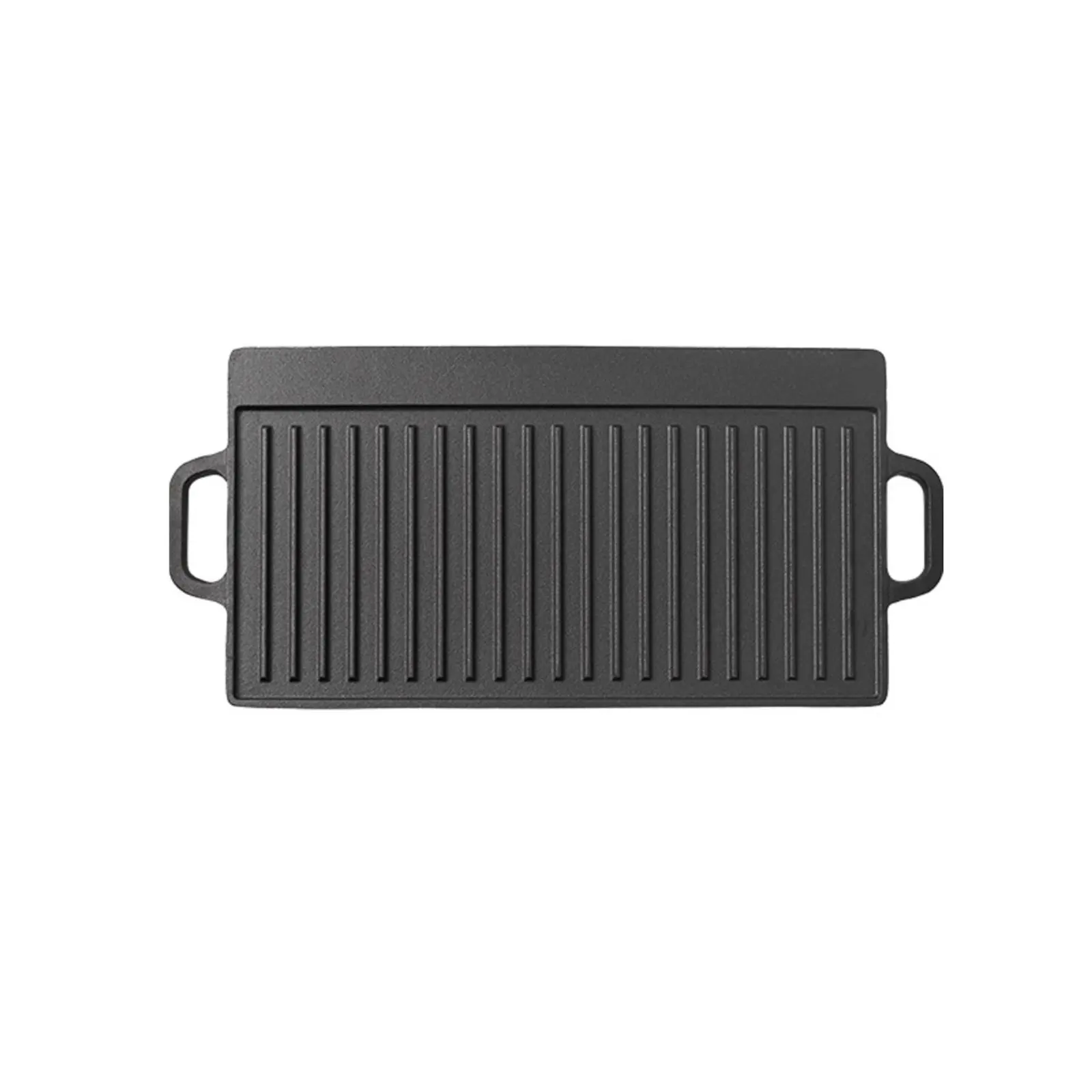 Dubbelzijdige gietijzeren grillpan, buiten camping BBQ-plaat, Koreaanse barbecuepan, compatibel met gas en inductie, draagbaar