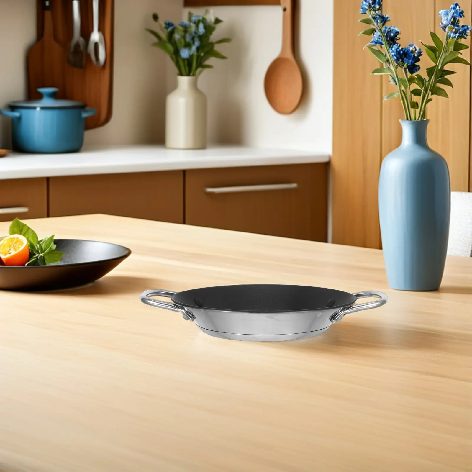Antikleef grillpan van roestvrij staal met dubbele handgrepen, geschikt voor inductie, voor steak, bacon, omelet, pannenkoeken en ander gebak.