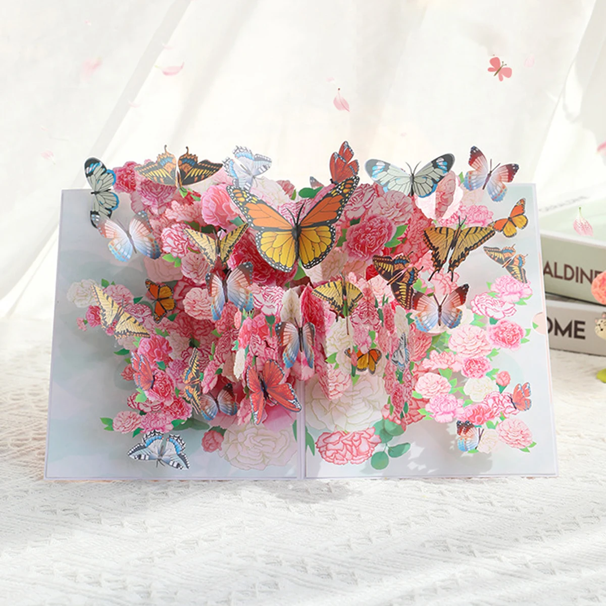 3D bloemboeket vlinder wenskaart, Moederdag bedankkaart met envelop, handgeschept papier sculptuur cadeau