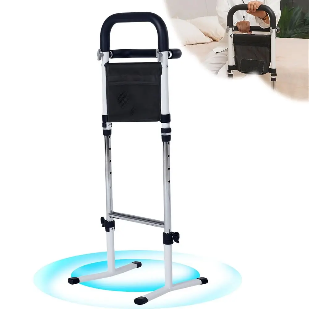 Bedrade rail, verstelbare stabiliteitsgreep, extra beugel, bedleuning, mobiliteitsassistent voor gehandicapten, met opbergtas en bevestigingsriem