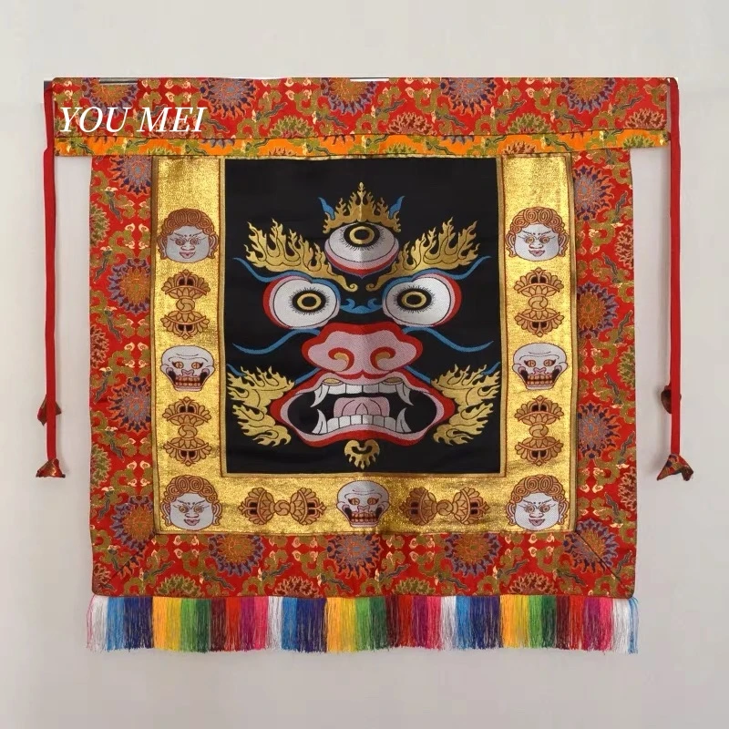 Vlaggen in Tibetaanse stijl, geborduurd hangend spandoek met drieogenbeschermerpatroon, boeddhistisch item kapelaltaar gebedsvlag wandhanger