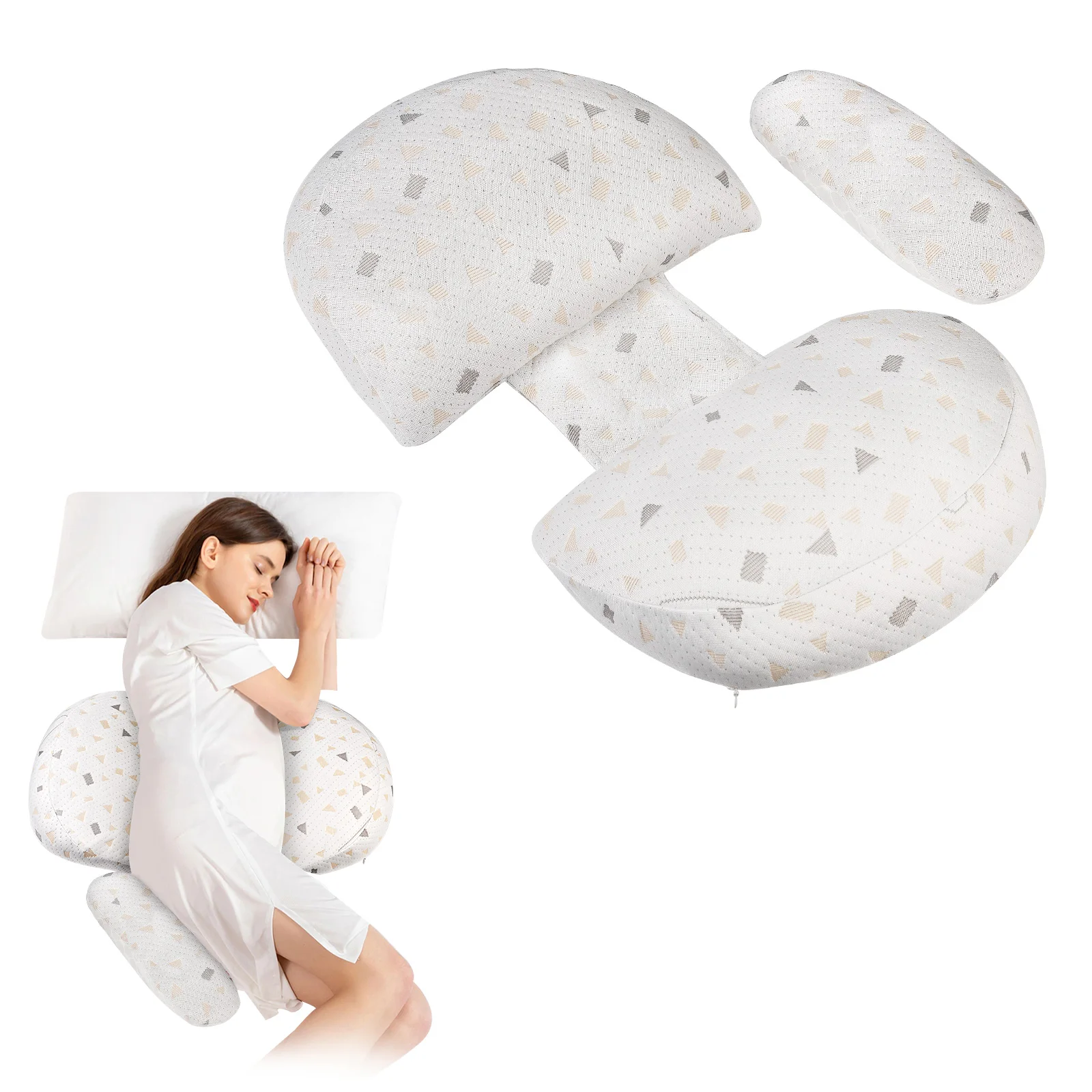 Zwangerschapskussen met sleehak, zwangerschapskussen voor zwangere vrouwen met verstelbare dubbele wig, multifunctioneel u-vormig kussen
