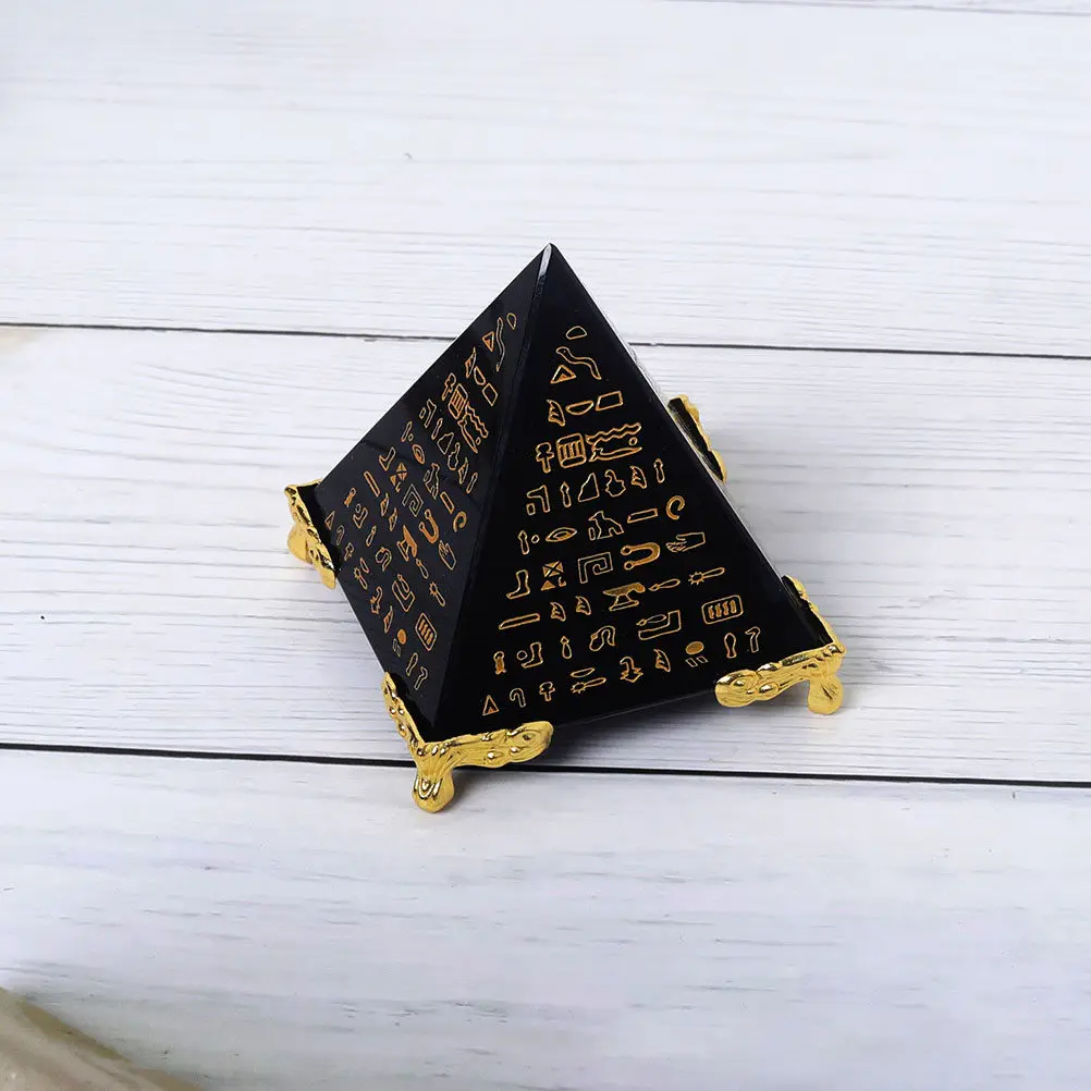 Zwarte Schriften Piramide Kristal Decor Huisindeling Desktopnament Auto Piramide Ambacht Praktische duurzaamheid Scène Decor