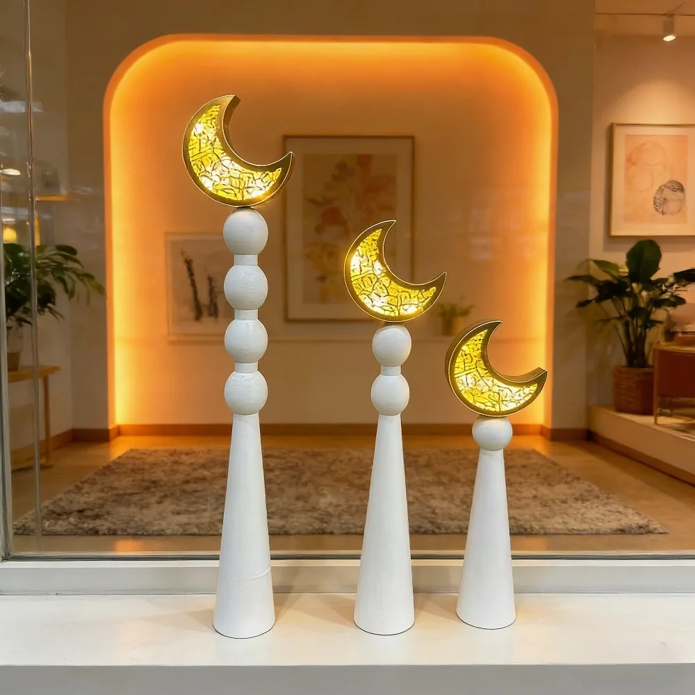 Nieuwe Midden-Oosten Arabische houten lichtgevende maan ornament 3-delige set Eid Mubarak Ramadan feest thuisdecoratie