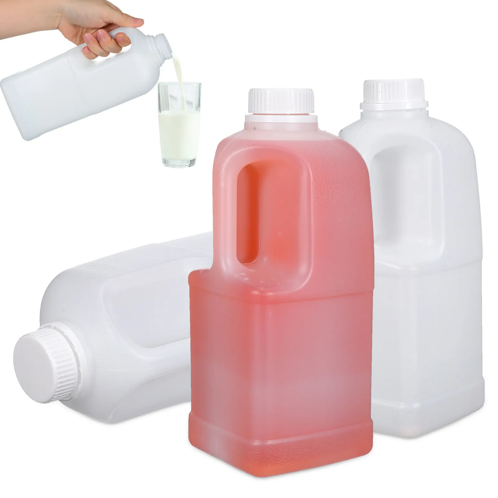 12 stuks plastic melkflessen met deksels verdikte lege drankflessen van voedselkwaliteit voor sap, water, melkopslag, draagbaar, gemakkelijk