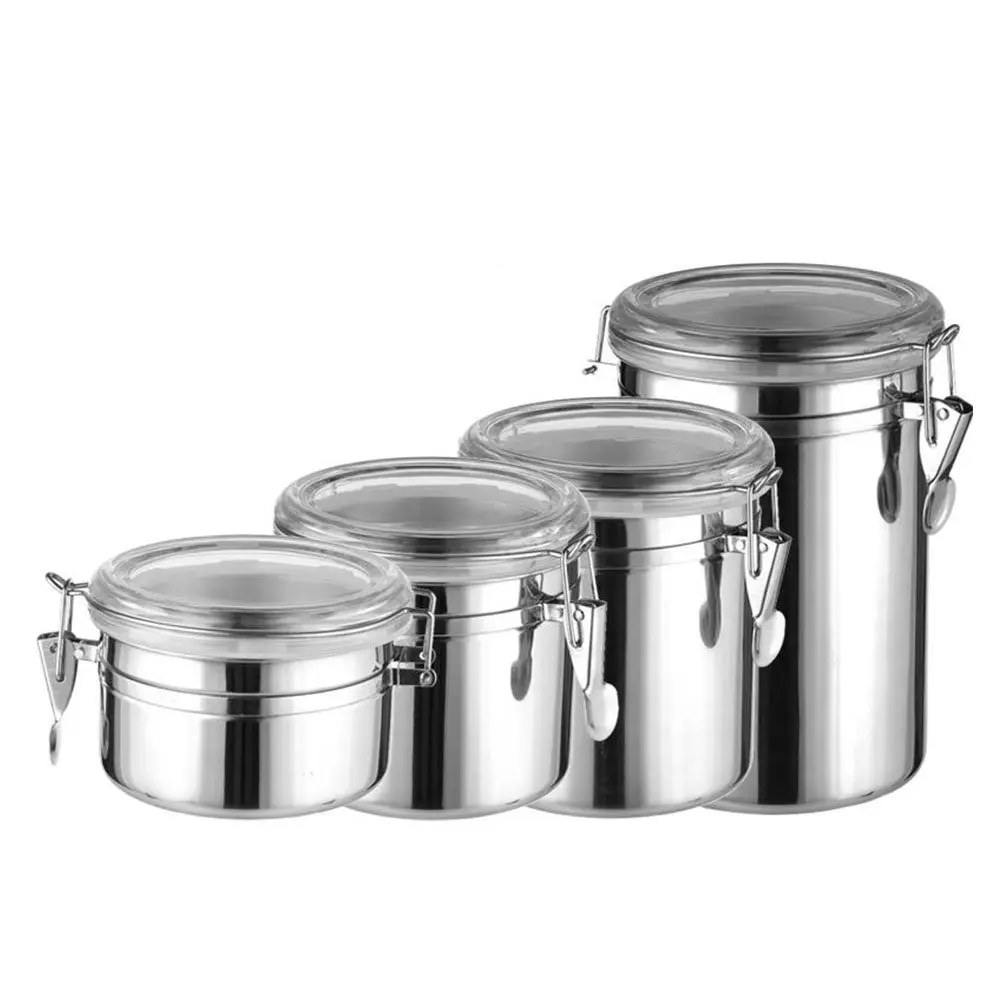 4 stuks bewaargezegelde potten van hoge kwaliteit roestvrij staal keukenopslag voedselcontainers voor thee koffie granen gedroogd fruit