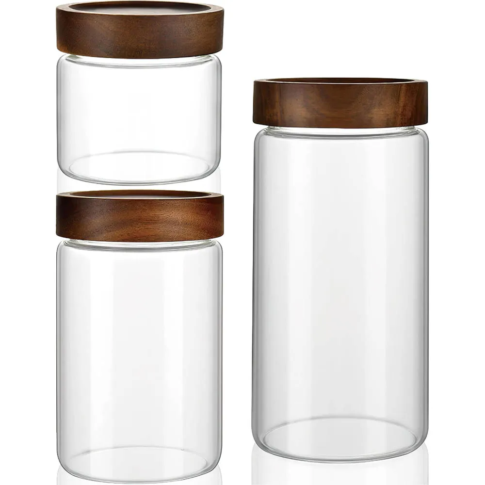 40oz glazen voorraadbus met luchtdichte houten schroefdeksel voor koffie, kruiden, snoep, zout, koekjes, sauzen, peper, suiker, pasta