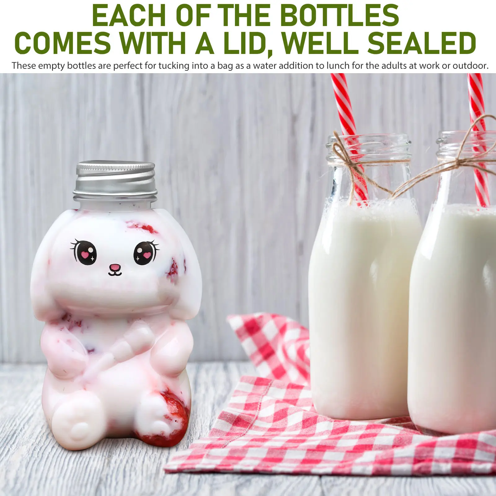 5 stuks konijnenvormige melk- en sapflessen, lege plastic opbergflessen voor huisdieren, draagbare drinkcontainers met deksels voor buiten