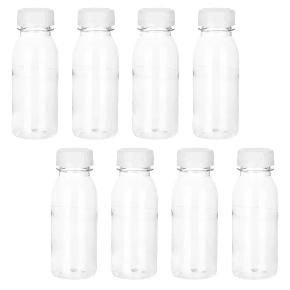 8 stuks transparante drankflessen, hoge helderheid, huisdierplastic, sapmelkopslagflessen, hervulbare opening, deksel, multifunctionele drank