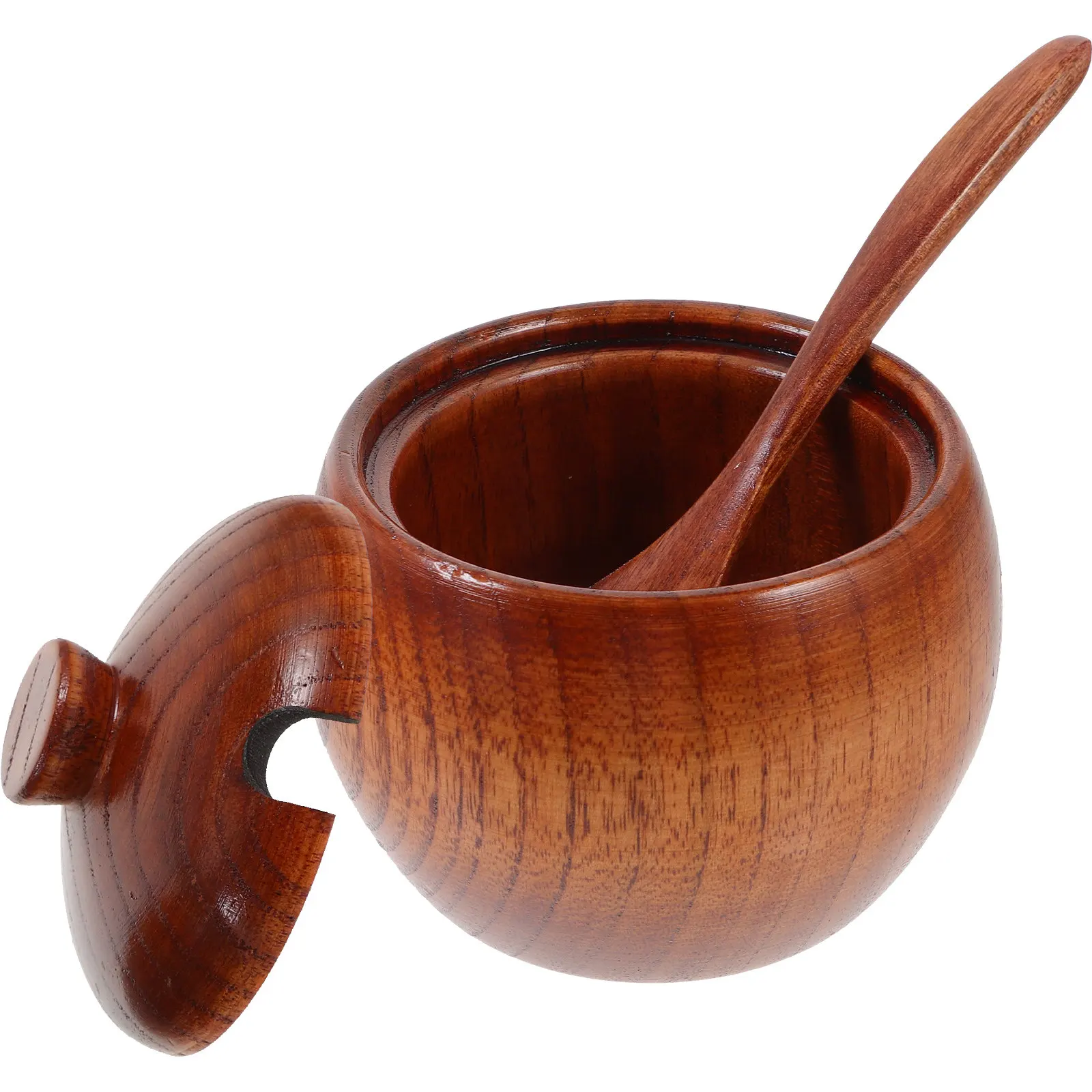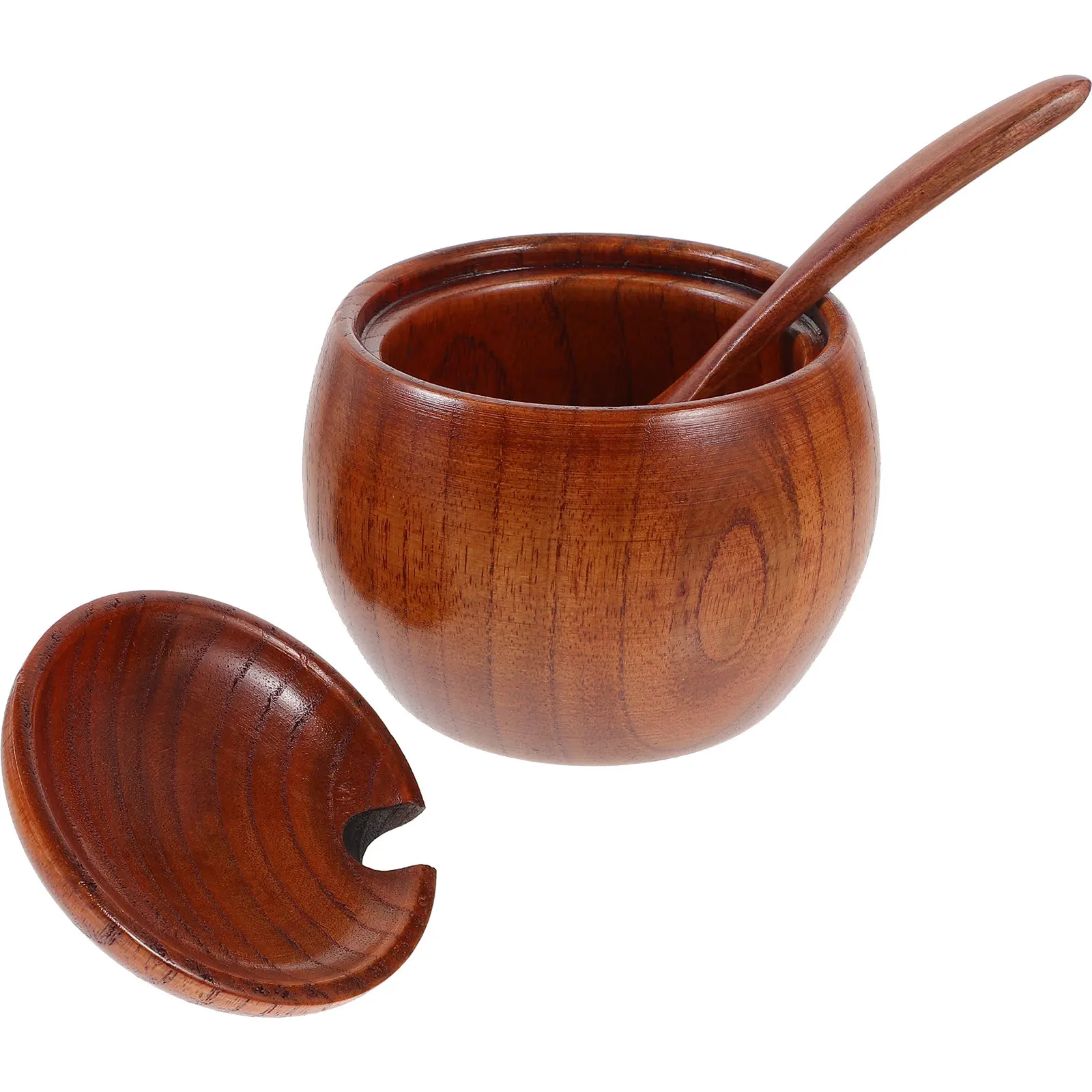 1Set Houten Kruidenpot met Lepel Multifunctionele Keukenopbergpot voor Zout Suiker Koffie Thee Snoep Droge Goederen Kruiderij