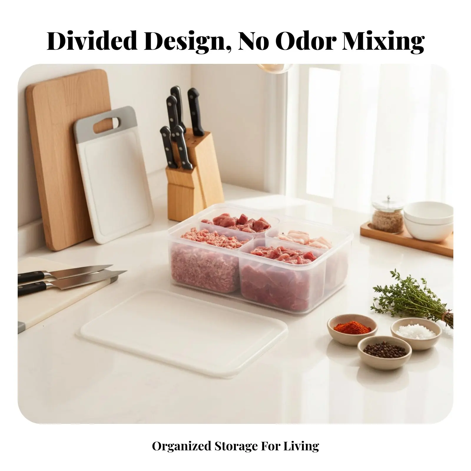 Safezer Compartment Box Stapelbaar ontwerp 4-compartimenten voedselbakje Luchtdichte sluiting Transparante buitenkant voor geïsoleerde lunchtas