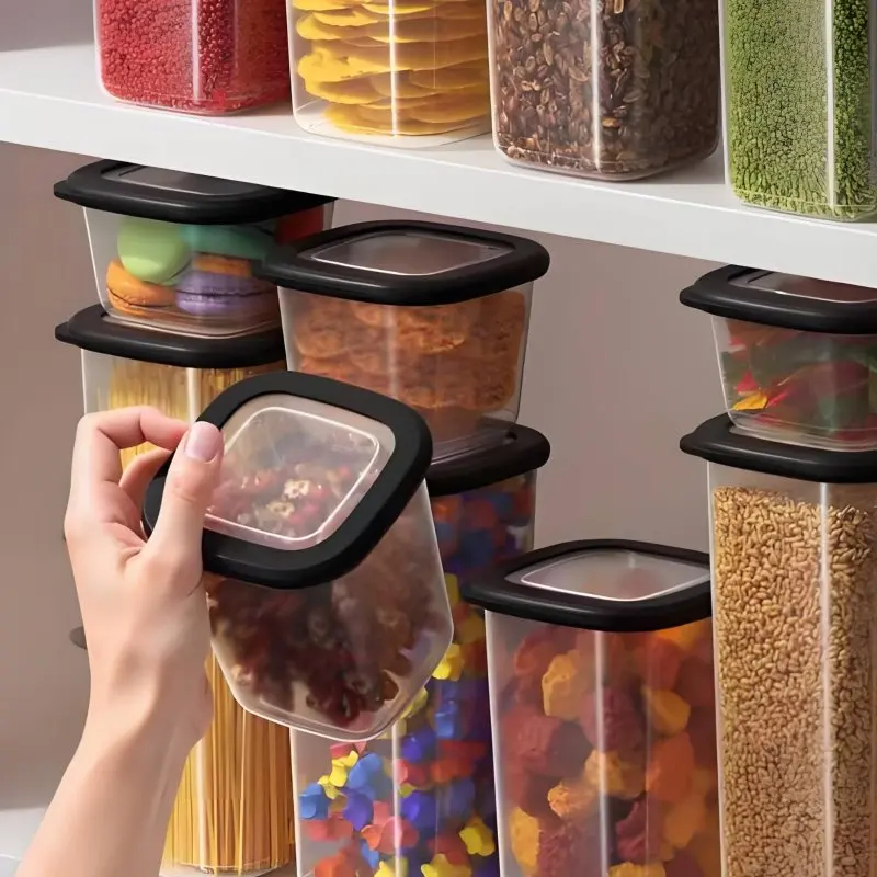 6-delige luchtdichte voorraaddozenset, transparante plastic bewaardozen voor droge voedingsmiddelen, stapelbaar, voor keukenorganisatie