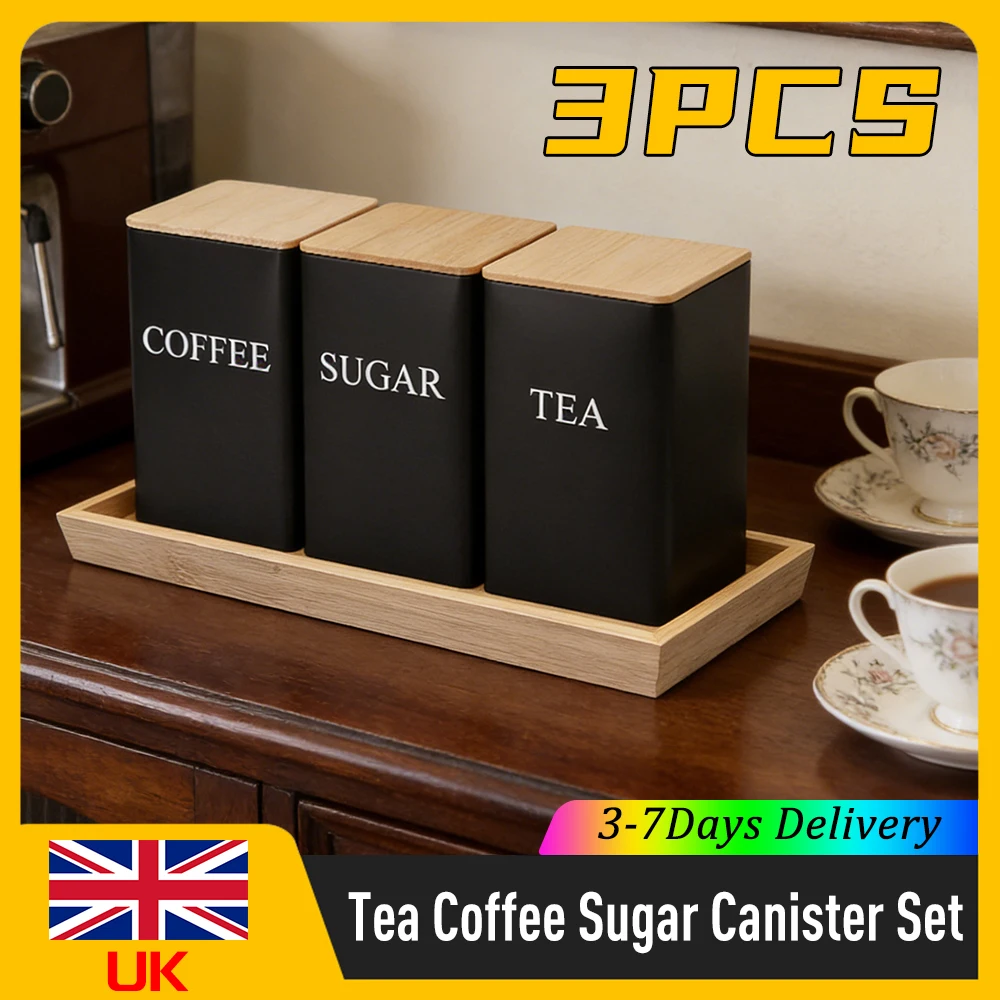3-delige thee-, koffie- en suikerbusjesset, luchtdichte thee-, koffie- en suikerpotjes, voorraadpotjes voor droge voedingsmiddelen, keukenbusjes voor thuisgebruik