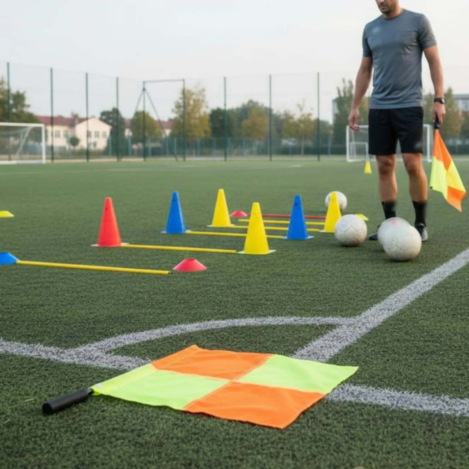 4 stuks atletische wedstrijdvlagen, goed zichtbare lijnenrechtersvlaggen, sponsgreep voor sporttraining, toernooi, teamsporten