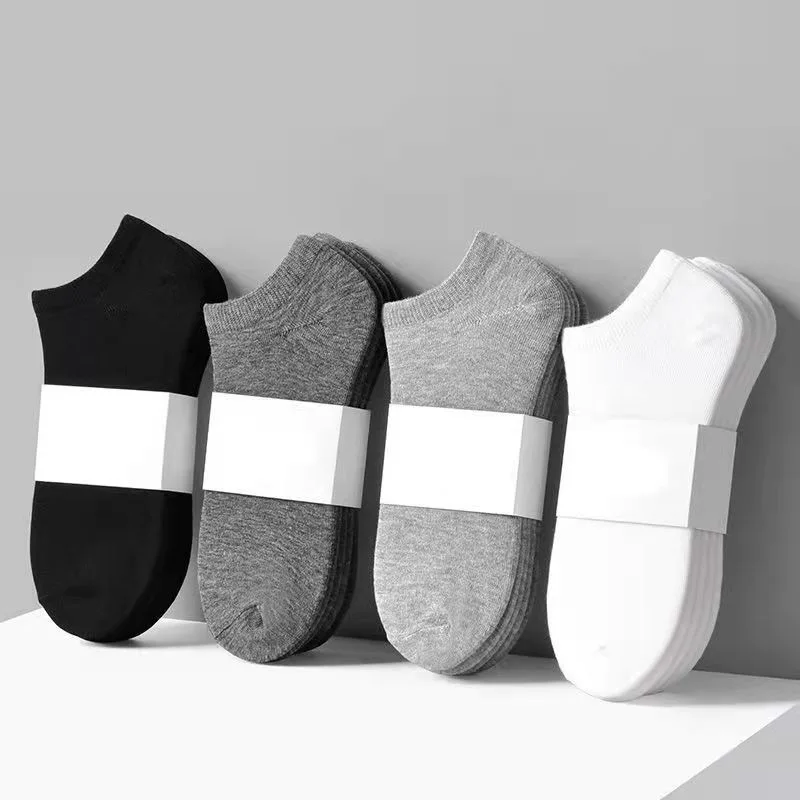 Zwarte, witte en grijze sokken, korte herensokken voor zomer, herfst en winter, effen gekleurde korte herensokken, onzichtbaar.