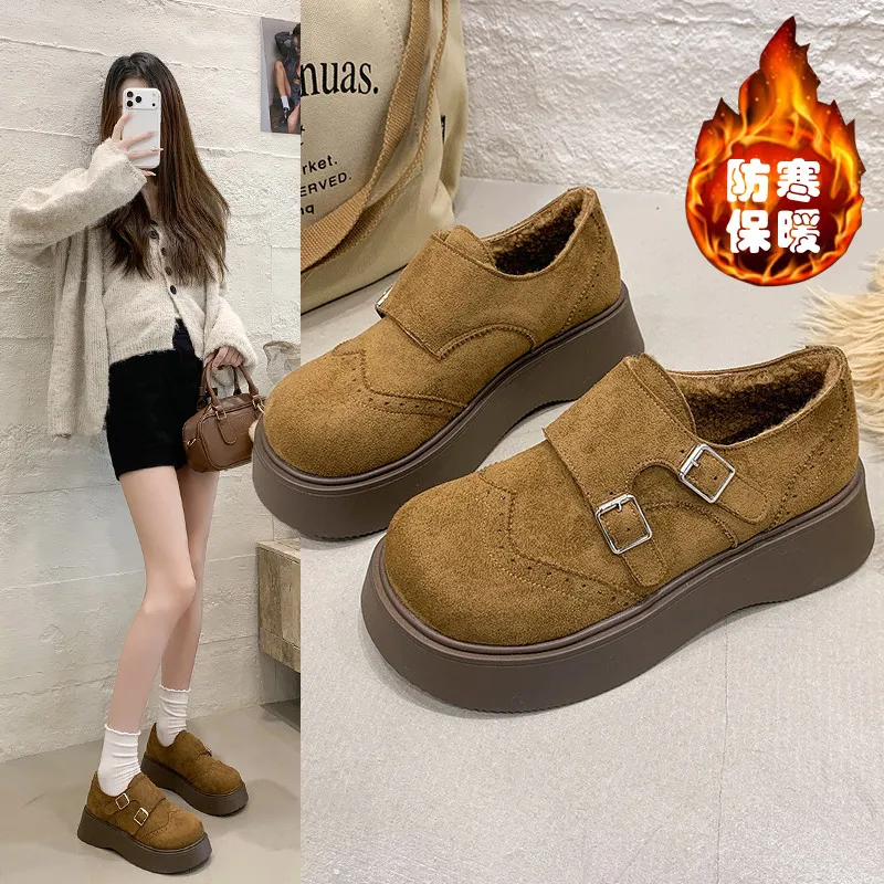 Winter Schoenen Vrouwen Verhoog Hoogte Damesschoenen Loafers Bont Slip-on Herfst Klompen Platform Mocassin Nieuwe Jurk Slip Op herfst