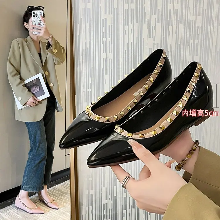 Verhoog de hoogte Klinknagels Studs Big Size Schoenen Vrouw Damesschoenen Klompen Platform Grote maat Comfortabele kleding Creepers Verhoogd