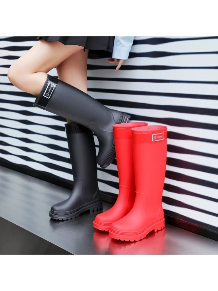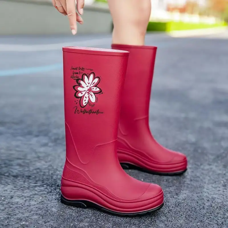 Koreaanse Sle High Tube dames regenlaarzen, anti-slip keukenlaarzen, PVC waterdichte buitenlaarzen voor alle seizoenen