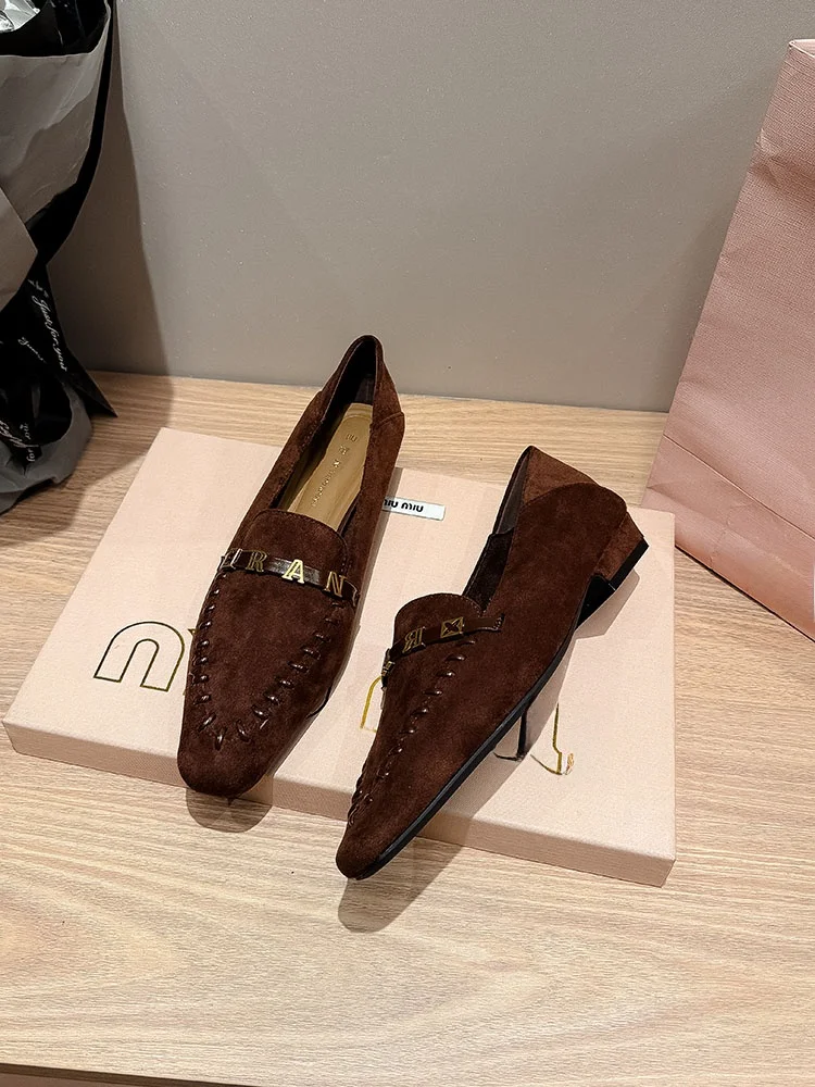 Yolomite lederen versie platte instapper vierkante neus lage hak dames schoenen kleine lederen schoenen diepe mond enkel schoenen