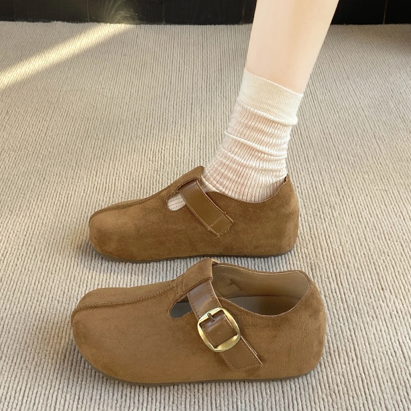 Verhoog de hoogte Schoenen Vrouw Flats Herfst Klompen Platform All-Match Slip-on Gesp Jurk Nieuwe Herfst Creepers Retro Comfortabel