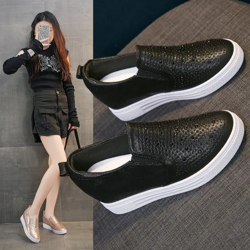 Damesschoenen Platform Damesschoenen Oxfords Ballet Flats Verhoog de hoogte Klompen Jurk Nieuwe lederen ballerina's Zomermocassin In