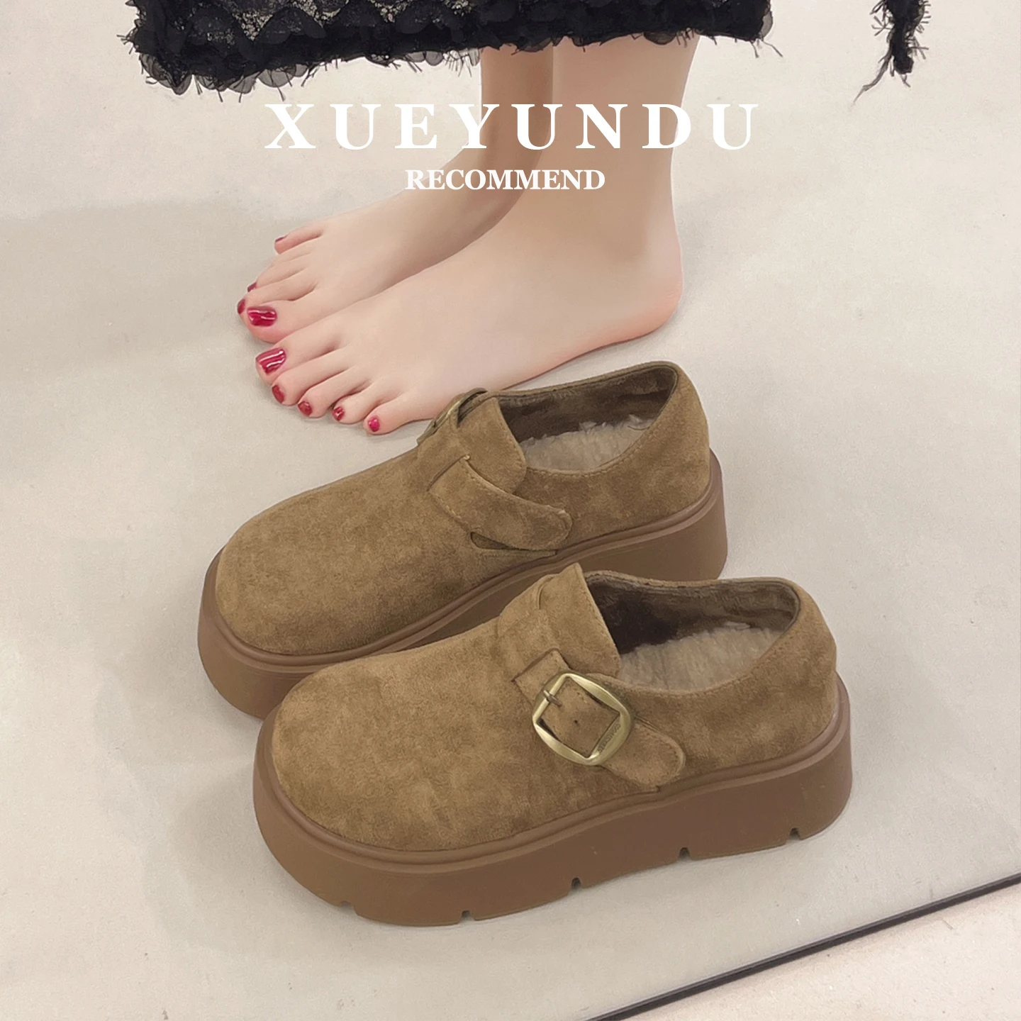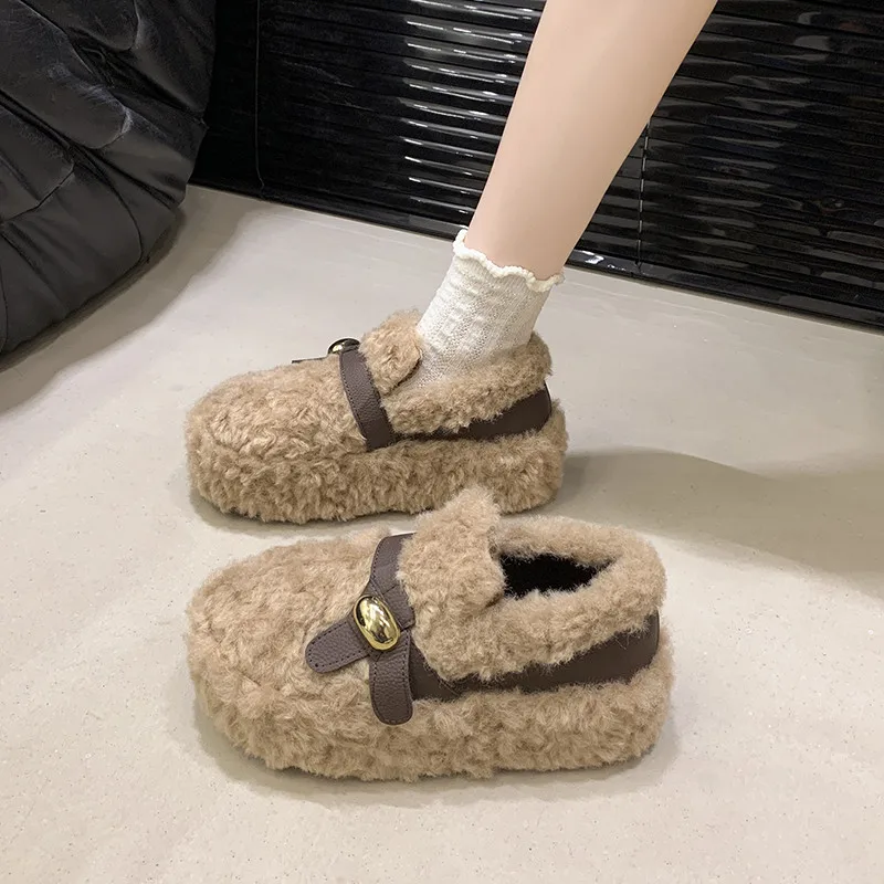 Damesschoenen Herfstklompen Platform Instappers Verhoog de hoogte Loafers met bont Herfst Winter Nieuwe klimplanten Instapper Verhoogd intern