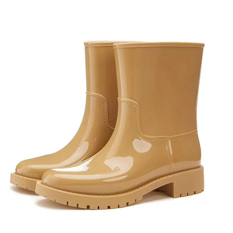 Vrouwen Blokhak Hoge Top Jelly Regenlaarzen Dikke Zool Antislip Ronde Neus Waterdichte Afneembare Katoenen Hoes Warm Houden Werkschoenen